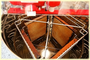 Die abgedeckelten Rahmen kommen in die Honigschleuder,