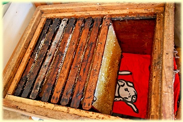die mit Honig gefüllten Wachswaben befinden), in einem Behälter, wie er sich auch im
