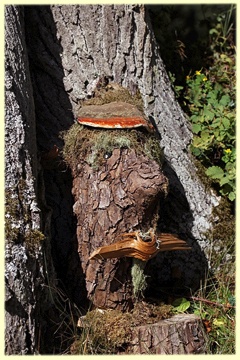 ein Baumstumpf. Ein Hinweisschild erinnert daran!