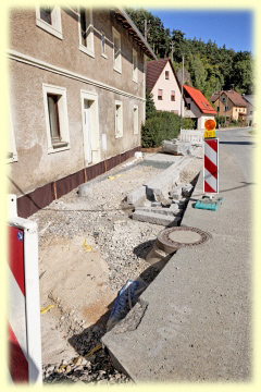 versehen wird. Zeitgleich wird eine neue Wasserleitung in Teilbereichen mit verlegt.