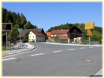 Die Kreuzung - neben der Kirche - die neue Brücke...
