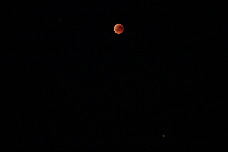 dies deshalb "Blutmond". Gleichzeitig war der Planet Mars rechts unterhalb