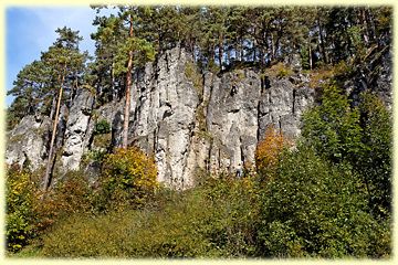 Sicherer ist es dann, ca. 100 Meter weiter Richtung Wiesentfels, an einem Weg, der steil aus