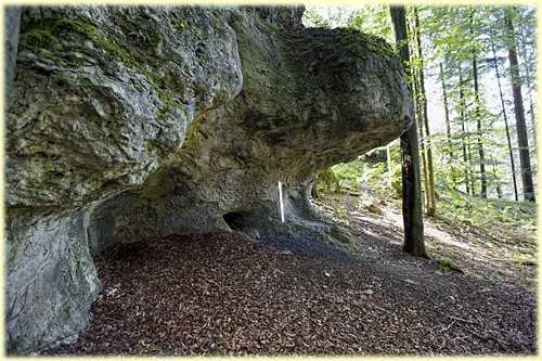 ...durch den Höhleneingang schaut man genau auf den Aufstieg zum ''Wüstenstein'' auf der